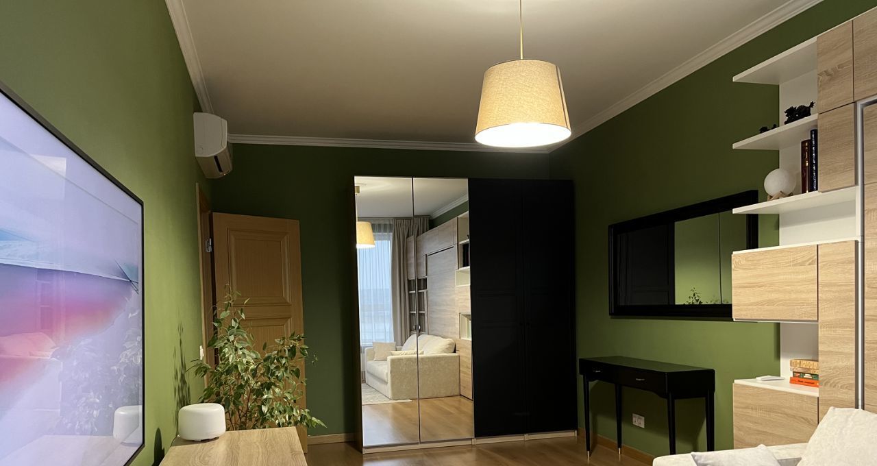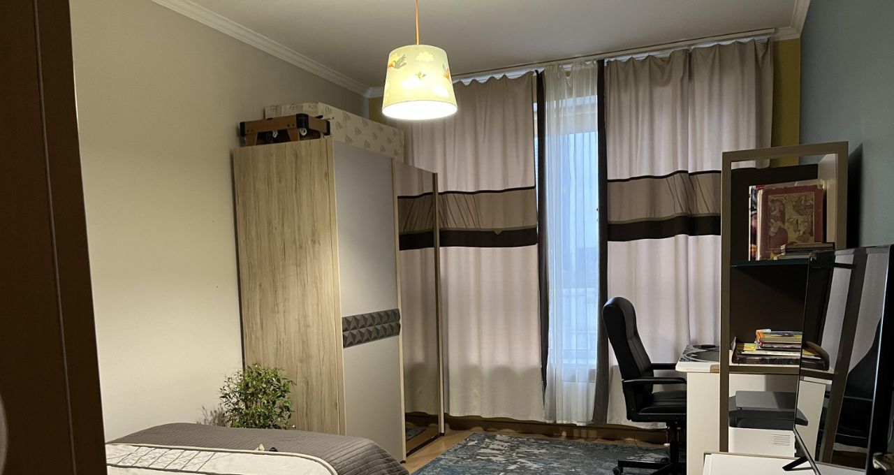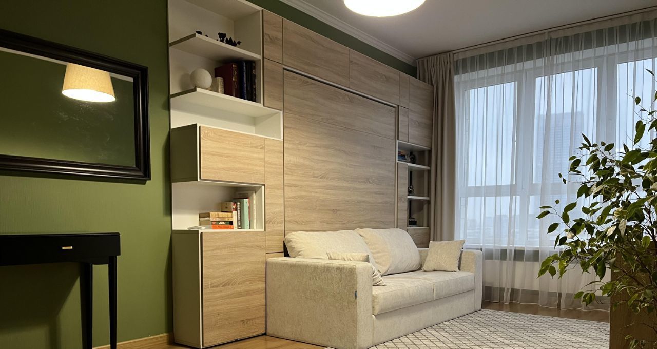 В квартире остается вся мебель, кроме детской. В спальне-гостиной мебель трансформер фирмы Olisys , позволяет превращать гостиную в спальню за 15 секунд. Окна выходят на восточную сторону. Лоджия утеплена, теплый пол. Прекрасный вид из окна.