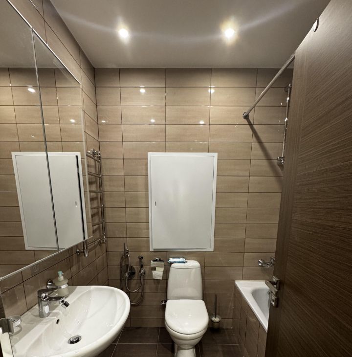 Квартира оборудована 2 кондиционерами, бойлер-на время отключения горячей воды, в ванной установлена защита от протечек, на кухне-посудомойка и измельчитель мусора. Стиральная машина.