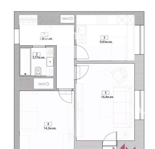 2-к кв. Москва Лазоревый проезд, 5к5 (52.4 м²)