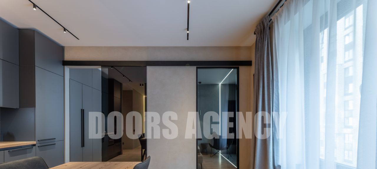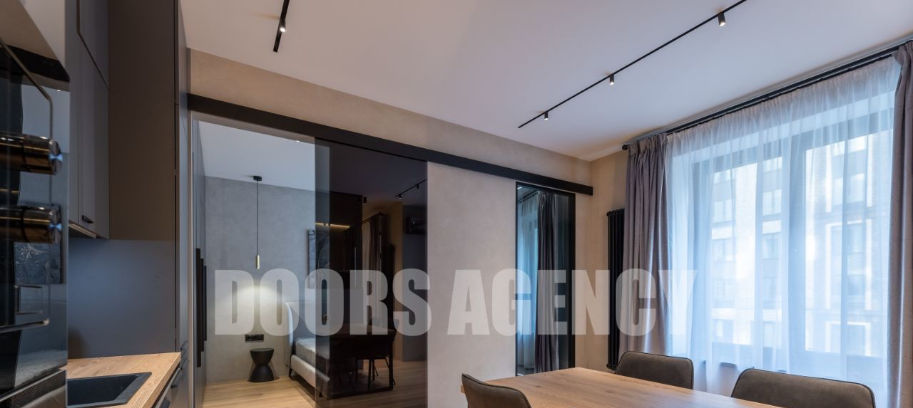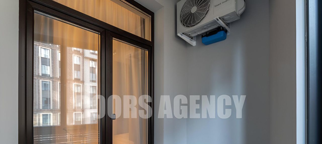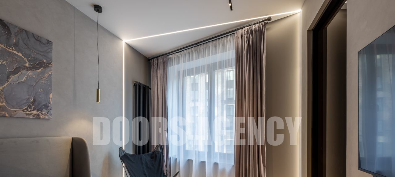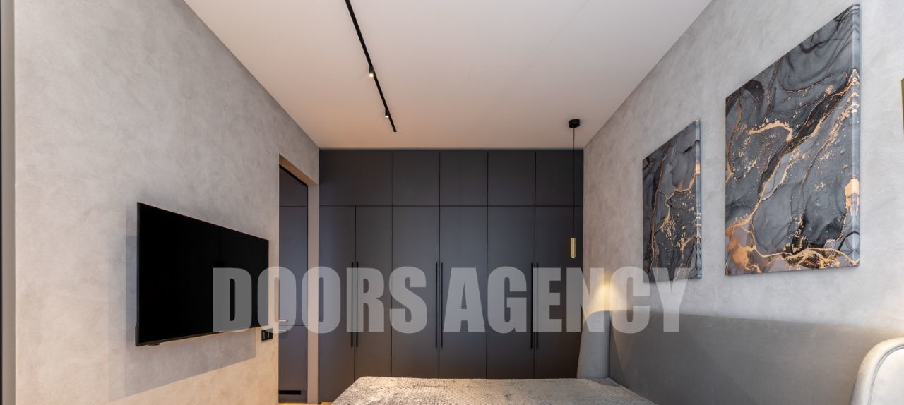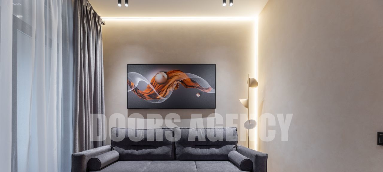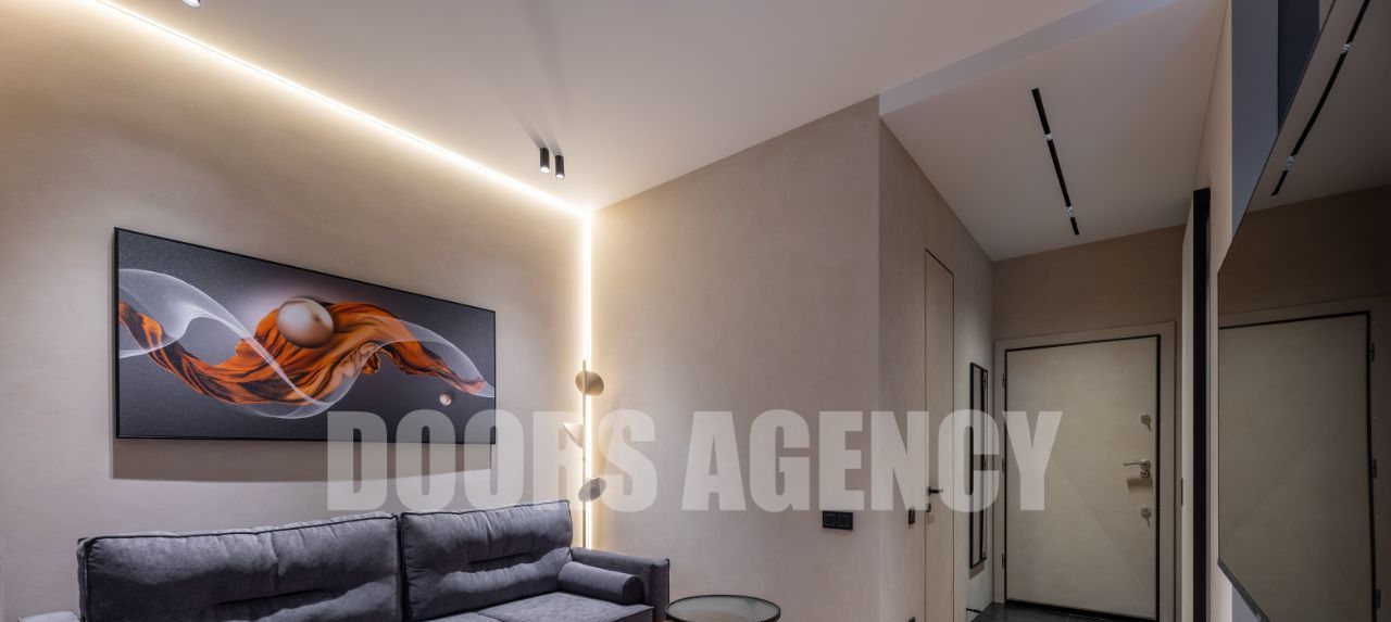 Прекрасная организация пространства: кухня-гостиная с выходом на лоджию, изолированная спальня с гардеробной, санузел совмещенный. Множество разных видов подсветки. В апартаментах имеется вся необходимая бытовая техника, в том числе: два телевизора, посудомоечная машина, кондиционер, микроволновая печь и духовой шкаф.