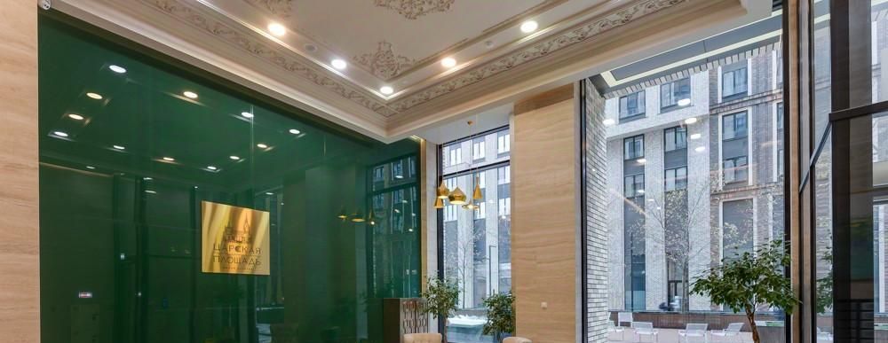 * Презентабельные входные группы с отделкой мрамором и мебелью в холлах. Территория комплекса закрыта для движения автомобилей, въезд в подземный паркинг строго через КПП. Круглосуточная охрана, 2-уровневый паркинг, красивый, внутренний двор, доступный только жителям дома. На территории комплекса расположены: фитнес-клуб Golds gym, ресторан высокой кухни Паризьен (звезда Мишлен) с фонтанами и летней верандой, салон красоты, кафе Волконский, итальянская пиццерия, студия танцев, аптека, магазин ВкусВилл, винотека. Очень красивая территория комплекса, ставшая модным и излюбленным местом для профессиональных фотосессий и киносъемок.