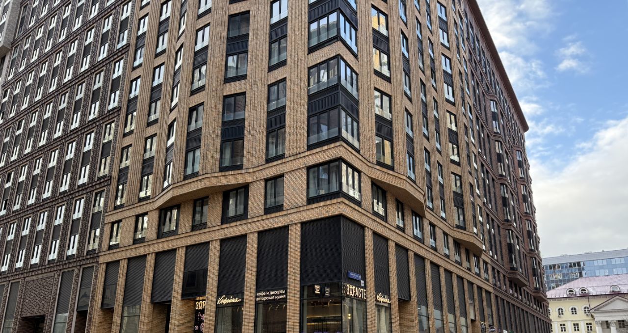 На первых этажах фитнес с бассейном, множество кофеен и салонов красоты, аптека, Вкус Вилл, рестораны.