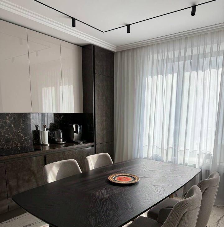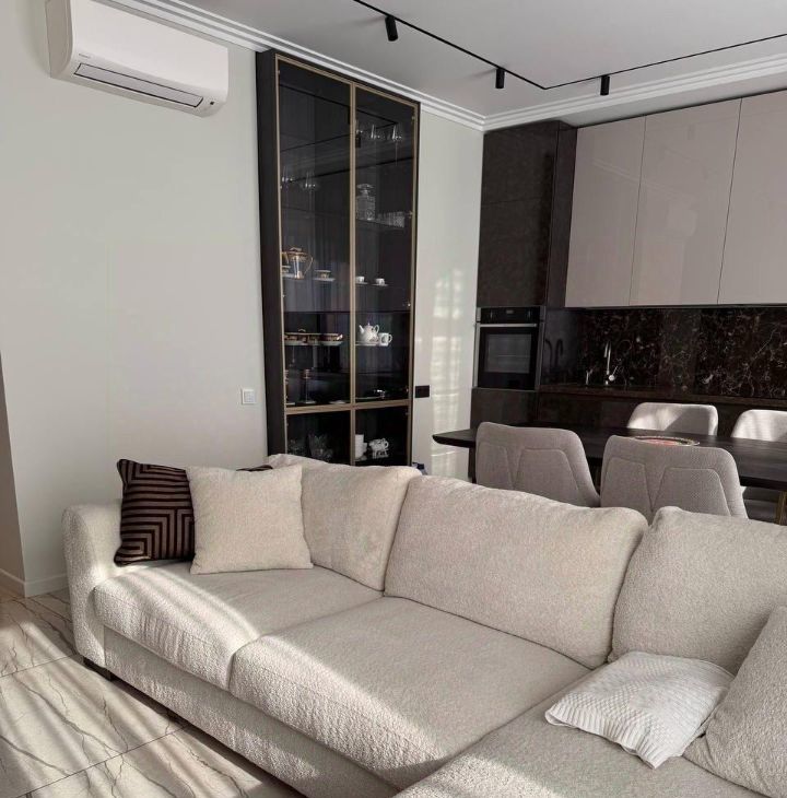Оборудована всей бытовой техникой: посудомоечная машина, стиральная и сушильная машина, холодильник, духовой шкаф, варочная панель, кондиционеры, телевизор, микроволновка.