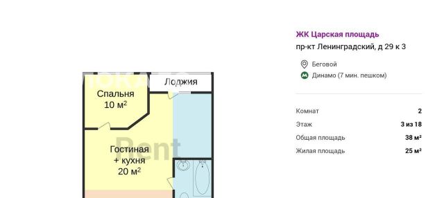БЕЗ КОМИССИИ ДЛЯ АРЕНДАТОРА. Предлагается двухкомнатная квартира в комплексе "Царская площадь", в 7-8 минутах ходьбы от метро "Динамо". Планировкой предусмотрены меблированные гостиная, совмещенная с кухней, и уютная спальня. Кухонный гарнитур оснащен комплектом необходимой для готовки техники. Комфортный микроклимат поддерживает кондиционер. Имеется застекленная лоджия.
