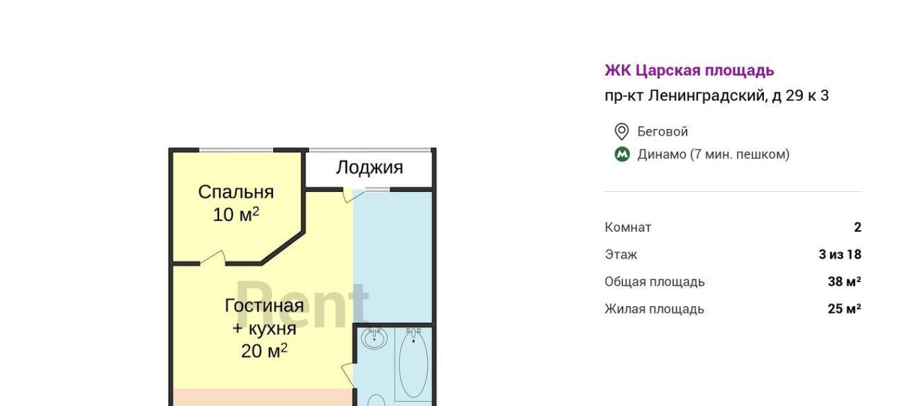 2-к кв. Москва Ленинградский просп., 29к3 (38.0 м²)