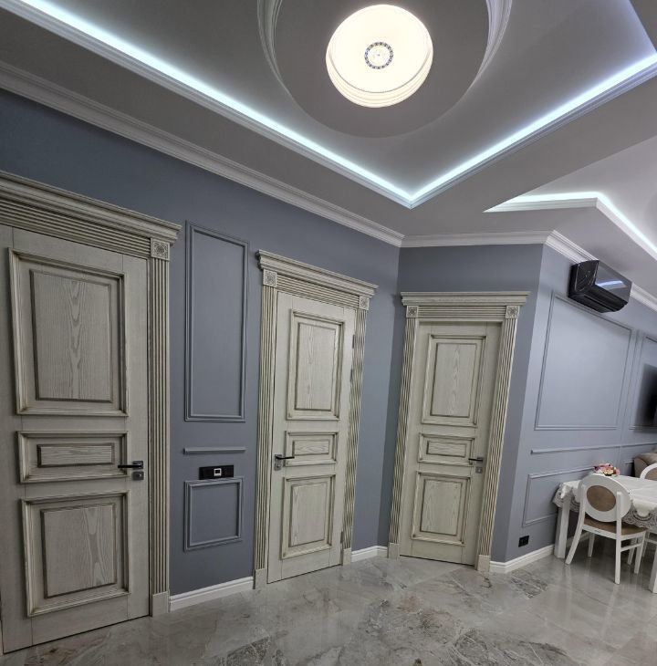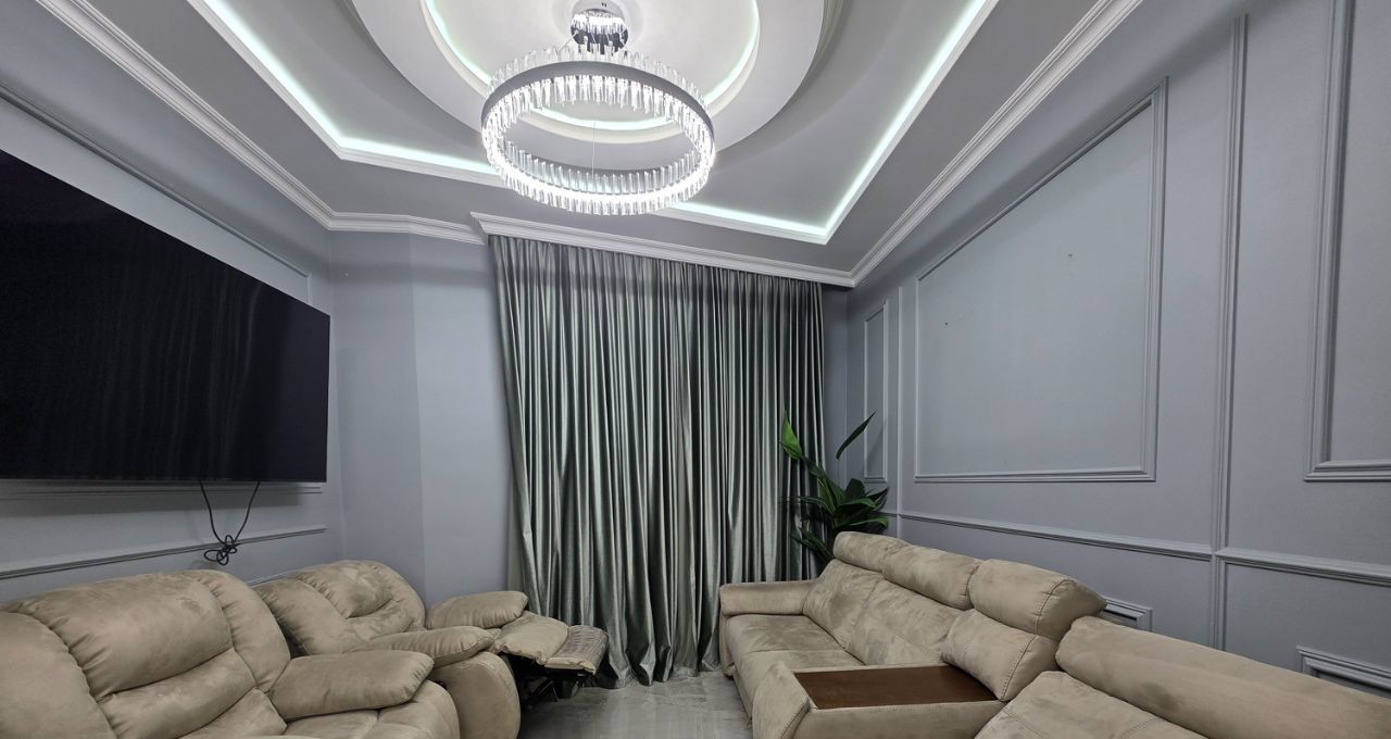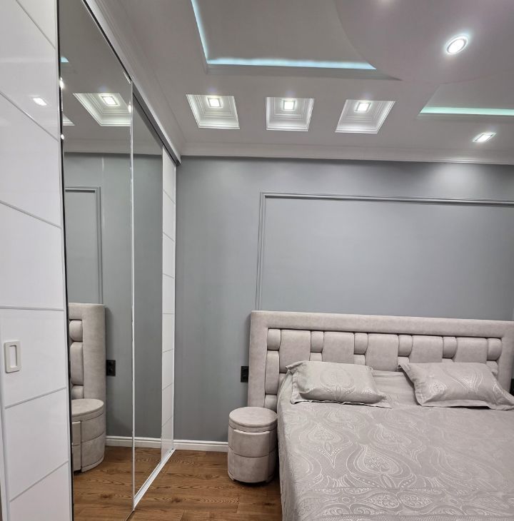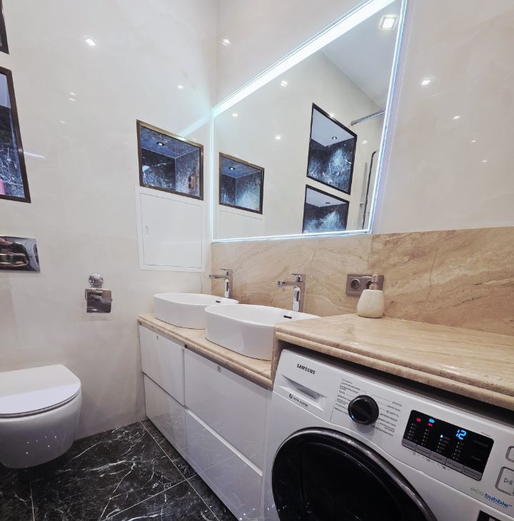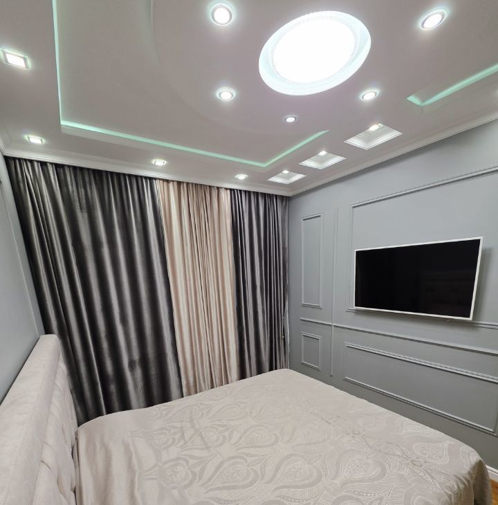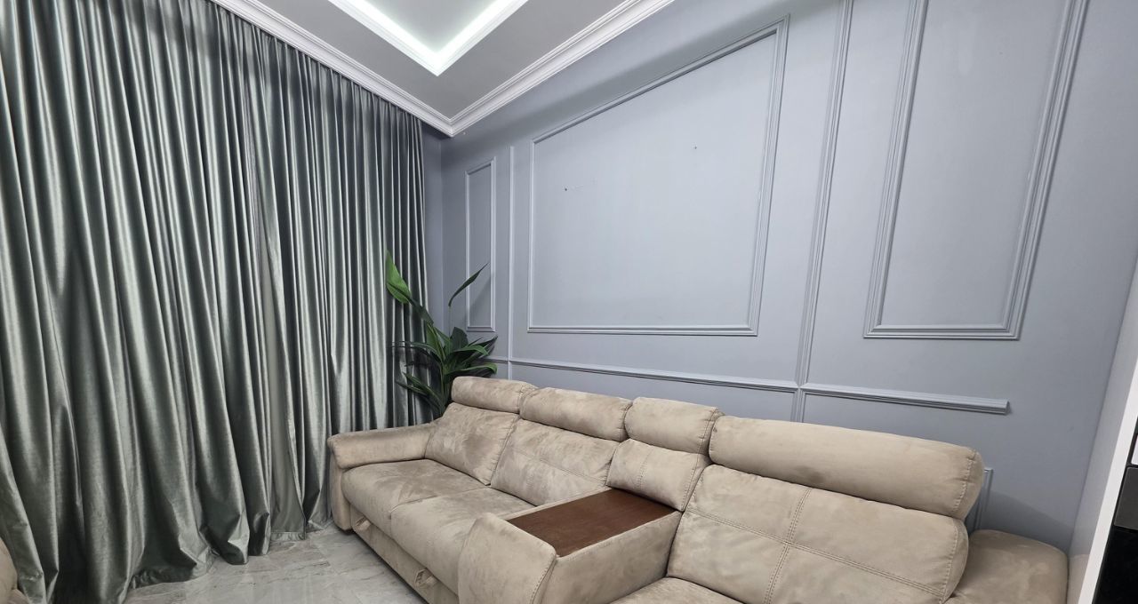 В квартире сделан дизайнерский ремонт. Она полностью меблирована: в комнатах и на кухне есть вся необходимая мебель. Кухня оборудована современной техникой, включая холодильник и посудомоечную машину на 12 персон, фильтр для воды. Диваны и кресла с реклайнерами, телевизор нового поколения, не искажает изображение при просмотре с любого угла. Для вашего комфорта установлены кондиционер в гостиной и в спальне. Спальня оснащена встроенным сейфом, все шкафы с подсветкой во время открытия. В квартире два совмещенных санузла, один из которых оснащен ванной со стиральной машинкой с функцией сушки, а другой — душевой кабиной. Есть один балкон, где можно наслаждаться утренним кофе.