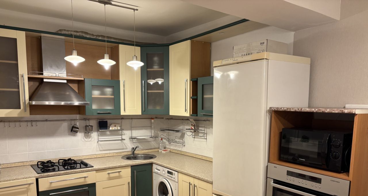 Кухня просторная, площадью 11 м², оснащена необходимой из бытовой техникой, включая холодильник и стиральную машину. В гостиной установлен кондиционер, а также имеется телевизор и диван. В спальне — удобная 2-х спальная кроватгь. Так же есть зона которую по желанию нанимателей можно оборудовать в гардеробную или в детскую комнату.
