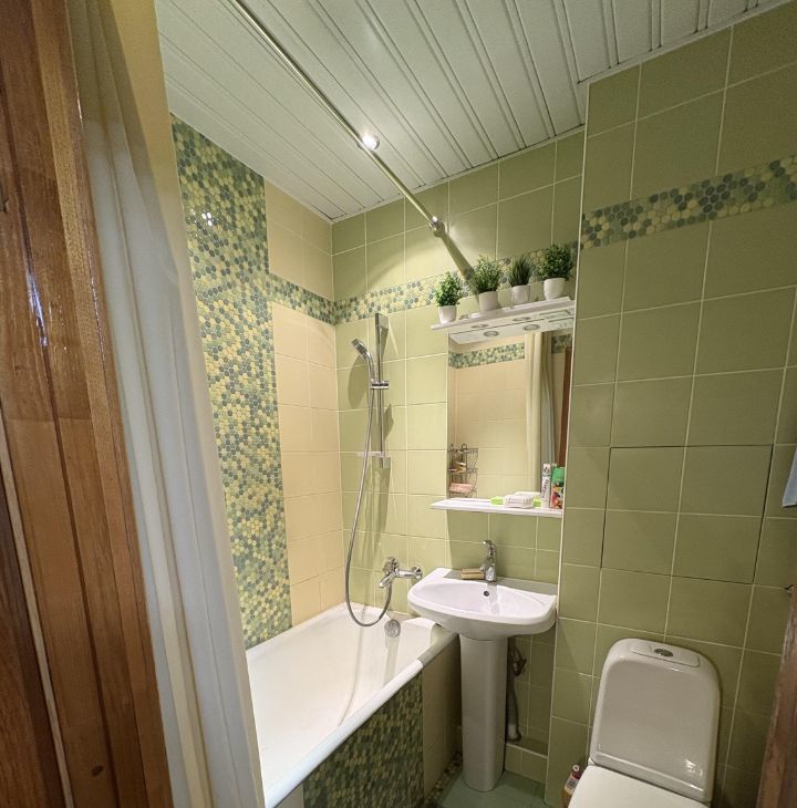 Санузел совмещённый, оформлен в светлых тонах. Из окон открывается вид на тихий двор.