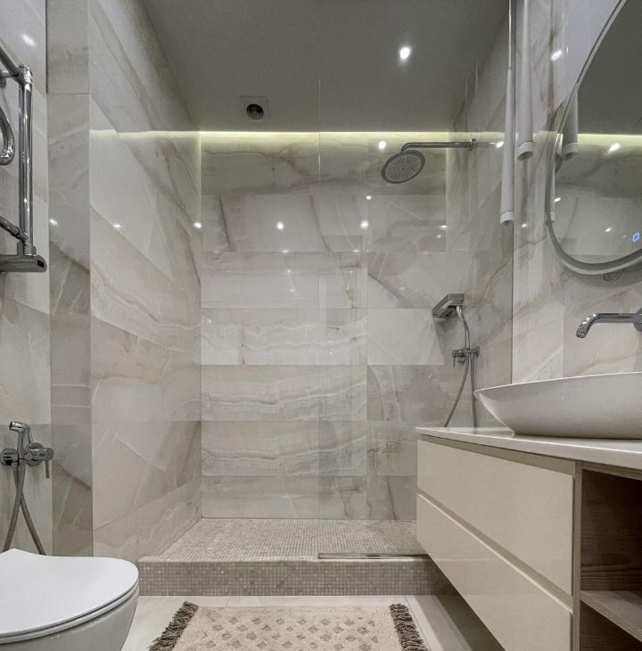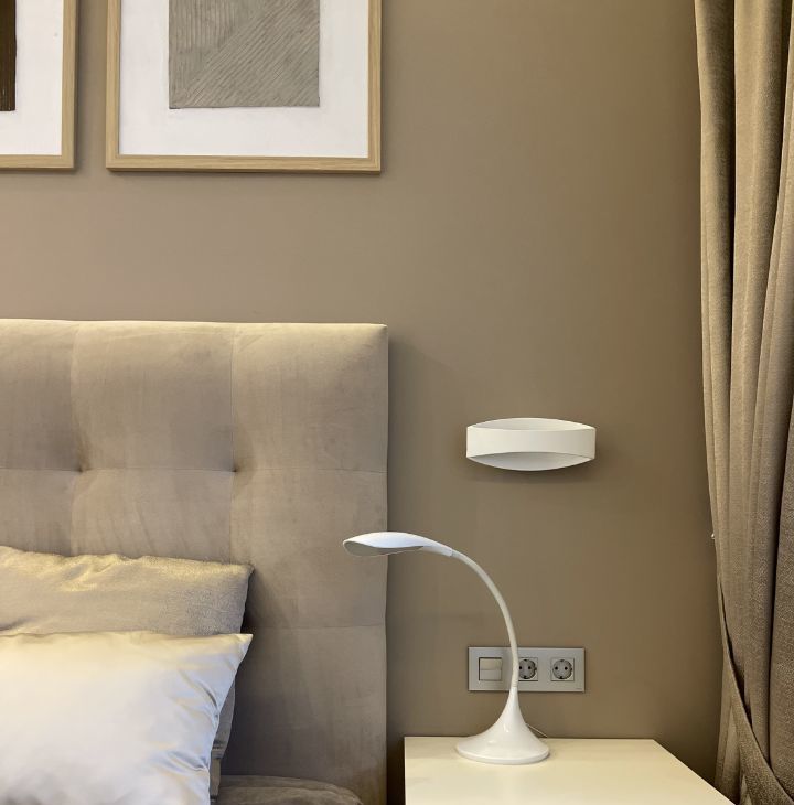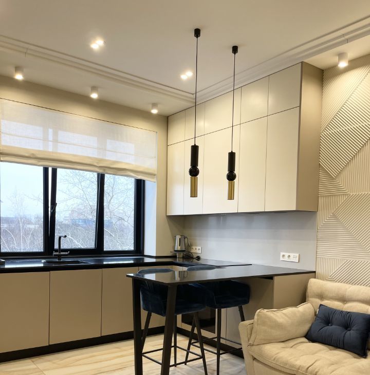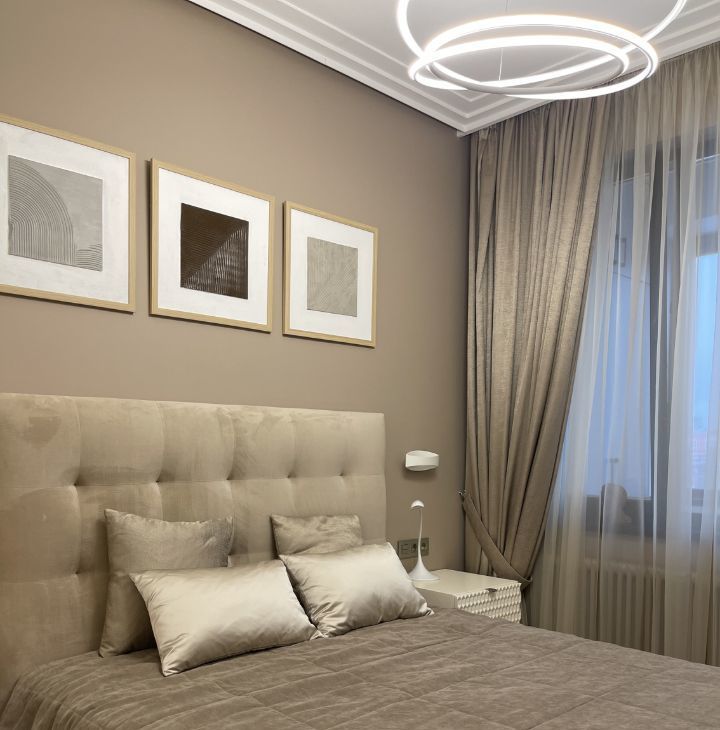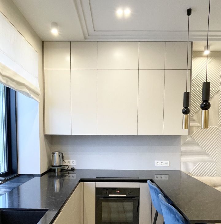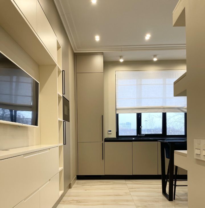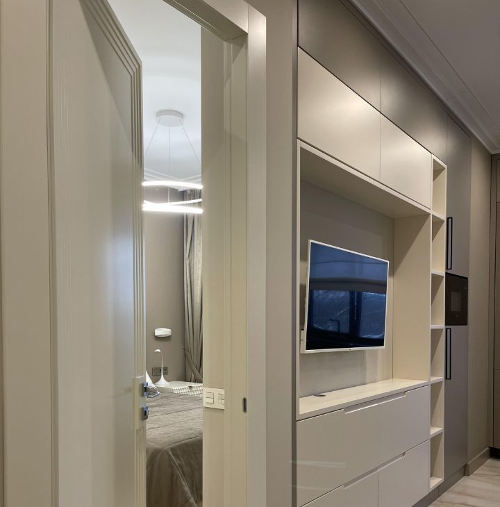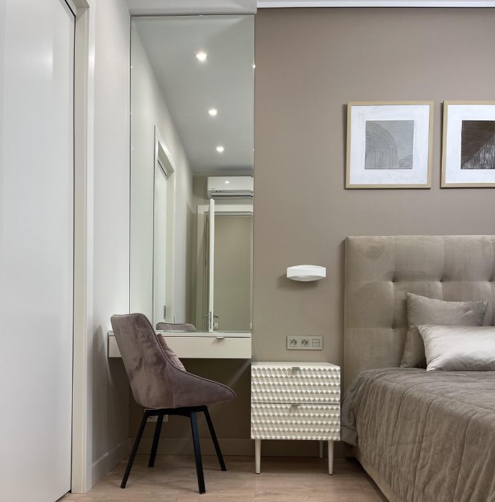 Современный элегантный дизайн, натуральные материалы в отделке, встроенные системы хранения, разные сценарии освещения. Кухня полностью оборудована премиальной встроенной техникой, в спальне на кровати новый ортопедический матрас.