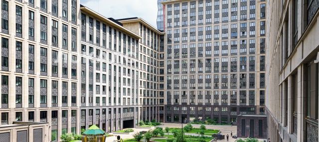 Вид из окон во внутренний двор. По внешней стороне дома на первых этажах, а также в соседнем бизнес центре, есть вся необходимая инфраструктура. В пешей доступности ТРЦ Авиапарк, 2 станции метро (Динамо, ЦСКА).