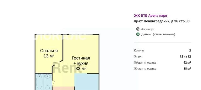 2-к кв. Москва Ленинградский просп., 36с30 (52.0 м²)