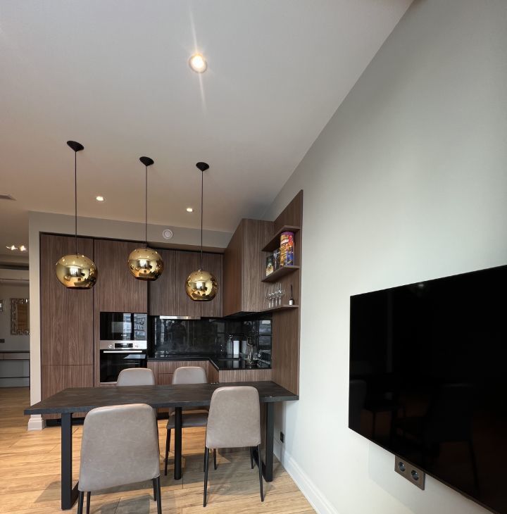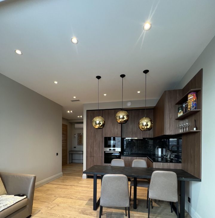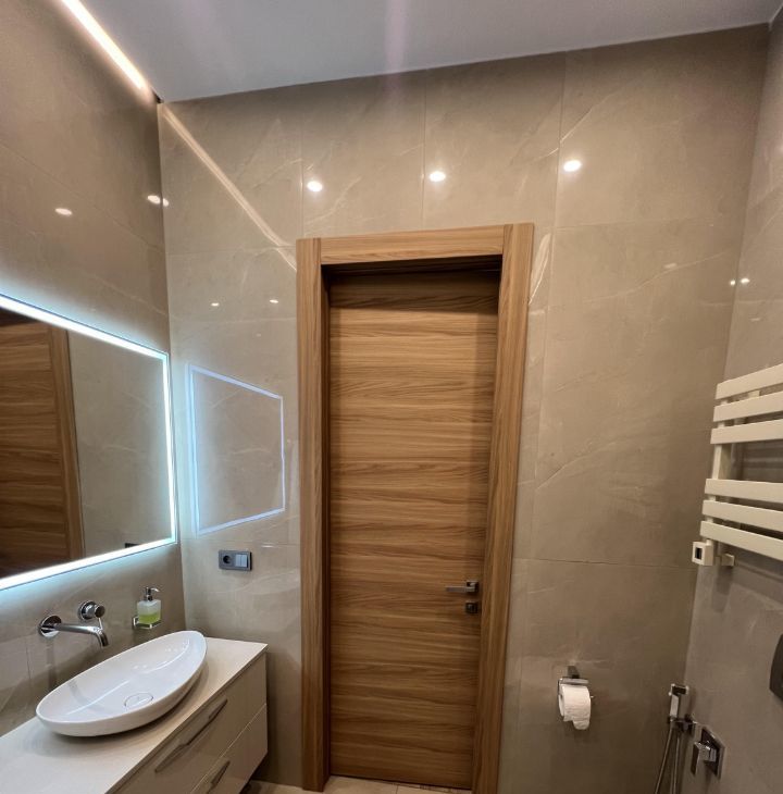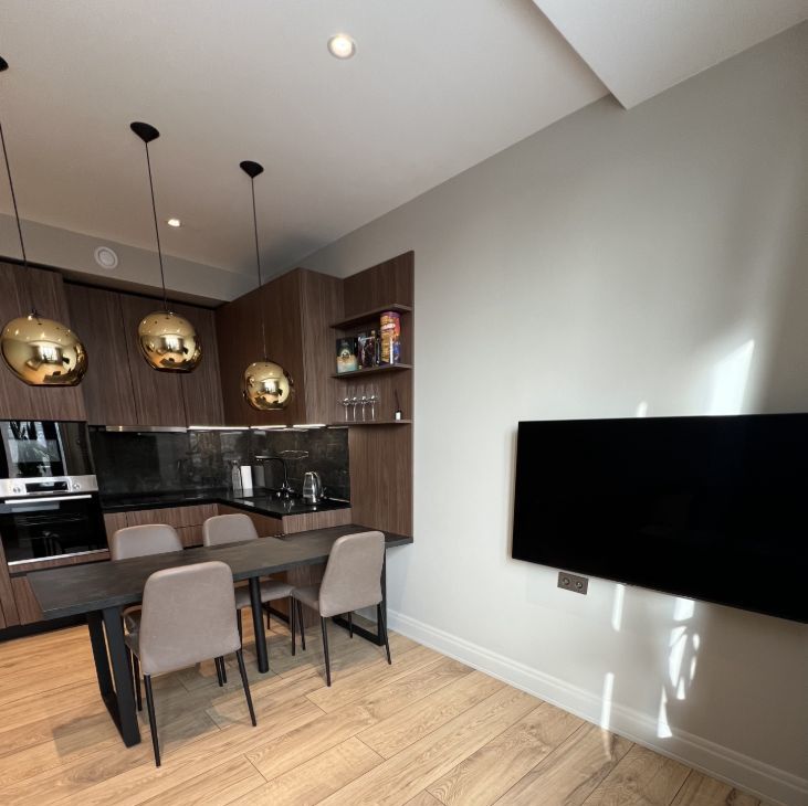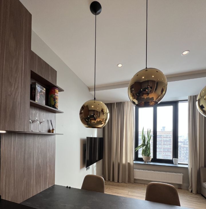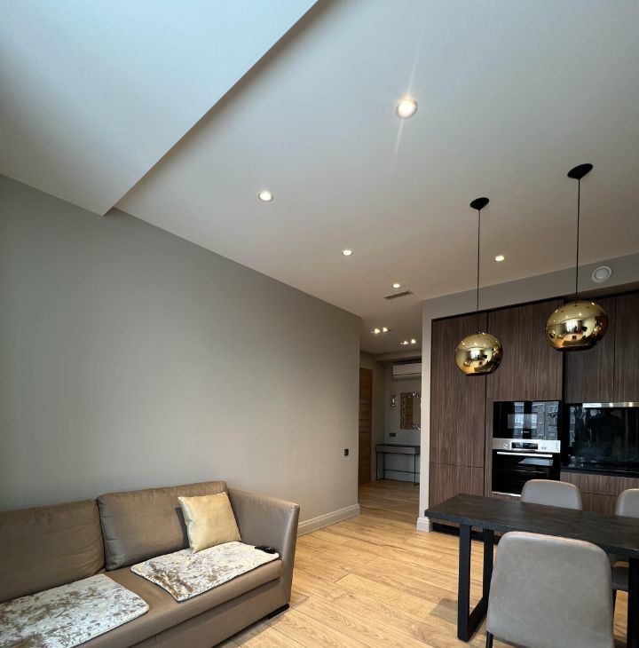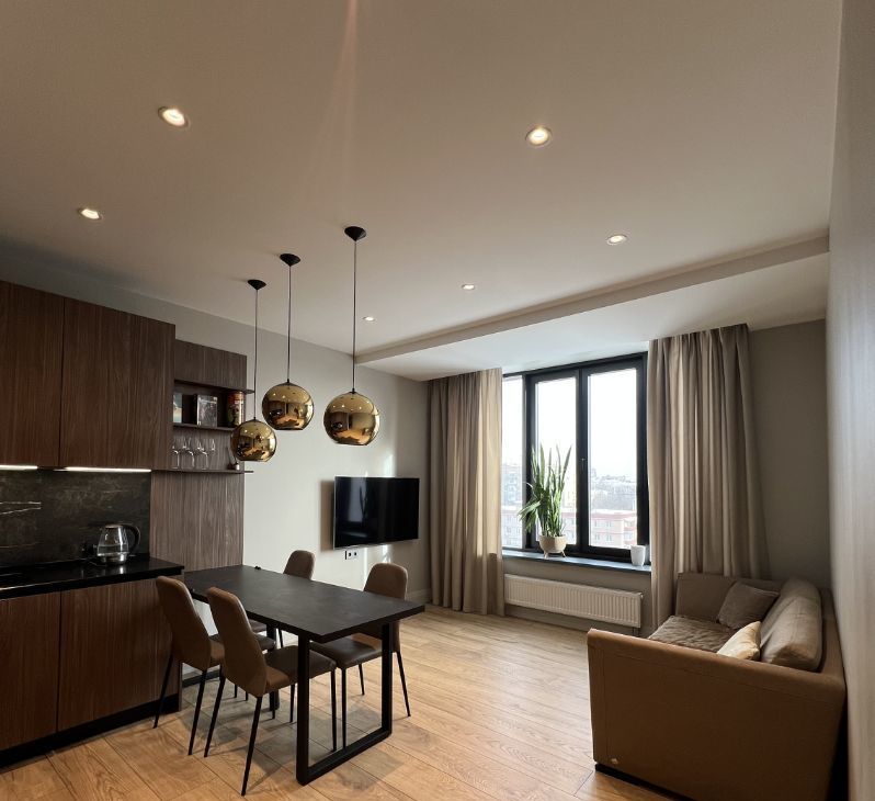 В квартире использованы только премиальные материалы: итальянская мебель, техника Neff и Bosch, столешница из натурального камня, встроенный фильтр для воды.