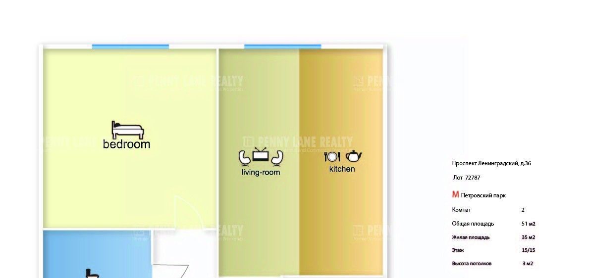 2-к кв. Москва Ленинградский просп., 36с38 (52.0 м²)