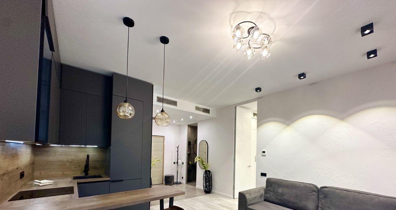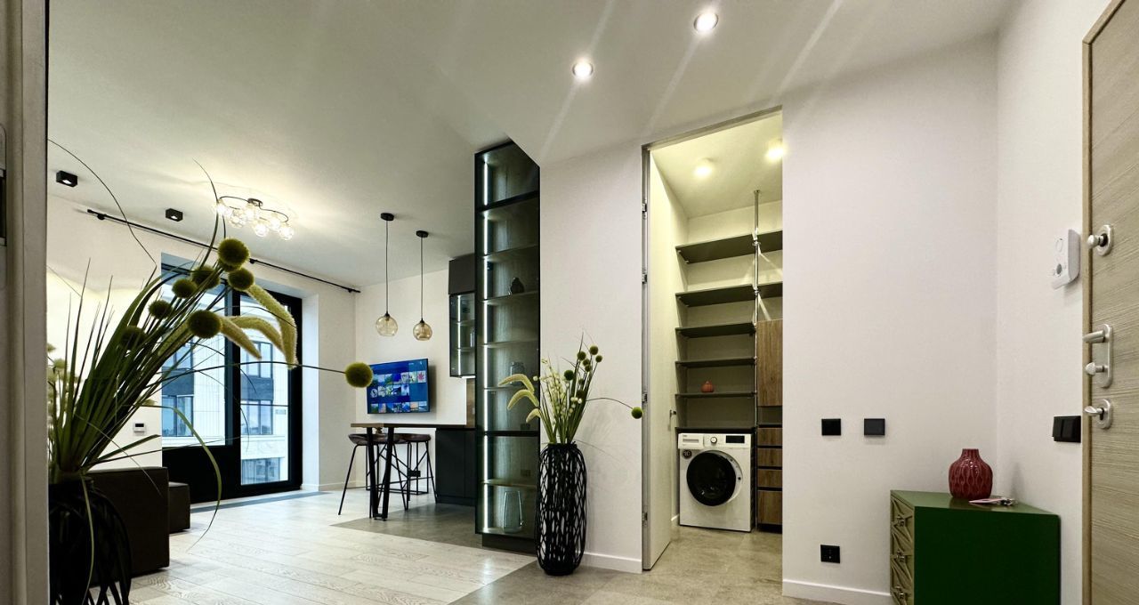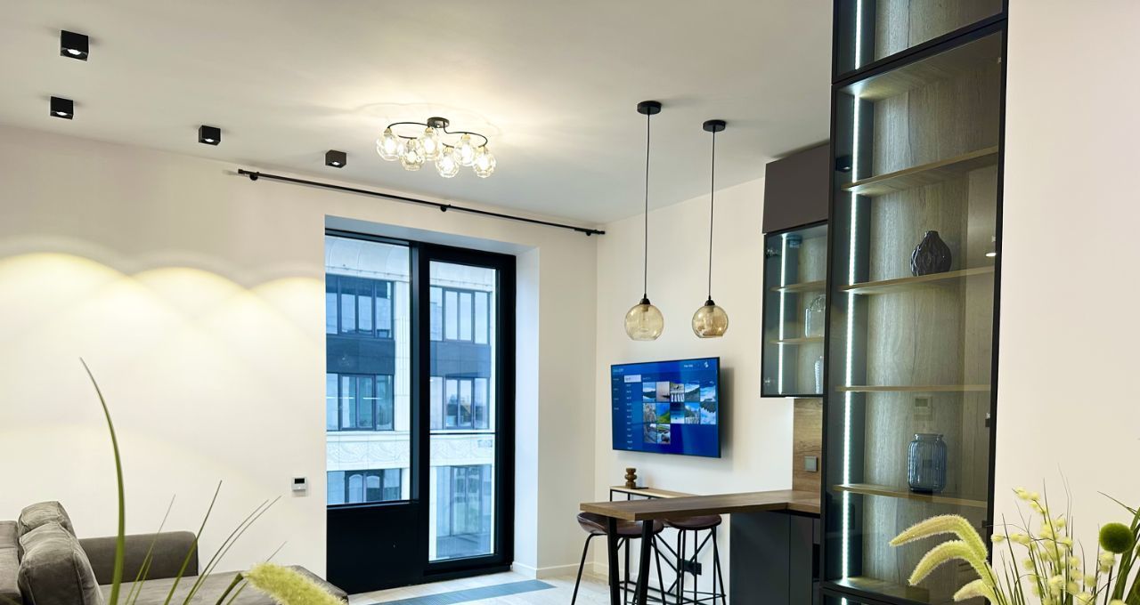 В апартаментах выполнен свежий дизайнерский ремонт в современном стиле.
