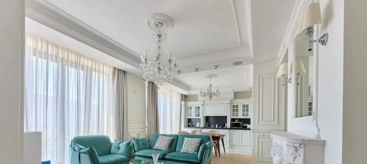 Квартира полностью готова для жизни, полностью мебелирована и выполнен качественный ремонт из премиальных материалов, а именно :