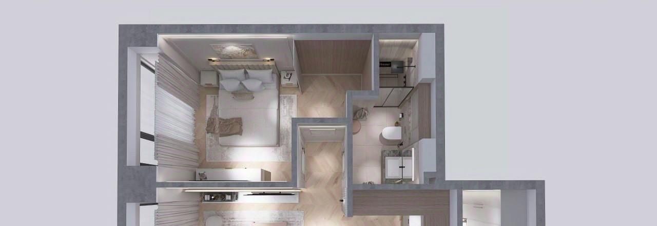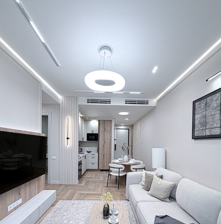 Квартира расположено на 32 этаже с общей площадью 50кв.м.