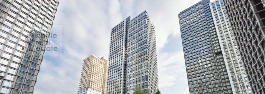 Общая площадь 50 кв.м., потолки 3 метра, квартира на 12 этаже 41-этажного здания с панорамным видом из окон.