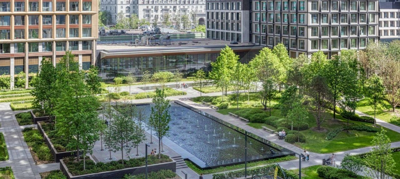 Общее парковое пространство 5,5 га, из них 3 га выделено под частных парк с фонтанами, детскими и спортивными площадками. На территории откроются частная школа с углубленным изучением английского языка, детский сад, фитнес-центр с 25-метровым бассейном и спа, подземный паркинг с детейлинг-центром для обслуживания автомобилей только для резидентов. На первых этажах расположатся кафе и рестораны, цветочный магазин, аптека, премиальный супермаркет и бытовые сервисы.