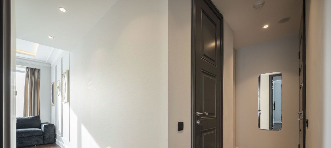 Представьте: вы просыпаетесь, а город еще спит. Солнечные лучи скользят по молочным стенам и высоким белым плинтусам, делая пространство невесомым. Эта квартира — как взбитая пенка в миндальном латте: нежная, согревающая, расслабляющая.