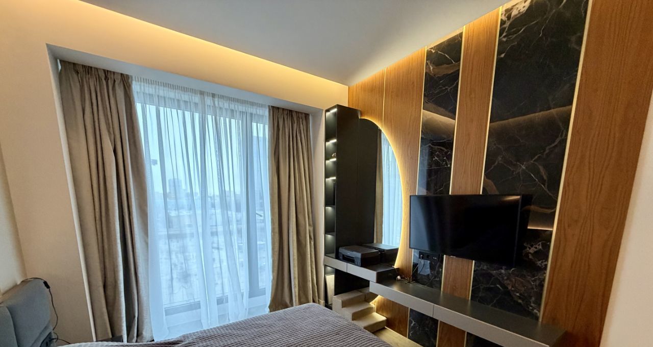 Просторная кухня-гостиная со столовой зоной гармонично сочетается с уютной спальней. Санузел с ванной и душевой, гардеробная и прихожая отлично располагаются и дополняют зоны! Панорамное остекление наполняет пространство естественным светом и открывает впечатляющие виды на Триумф Палас.