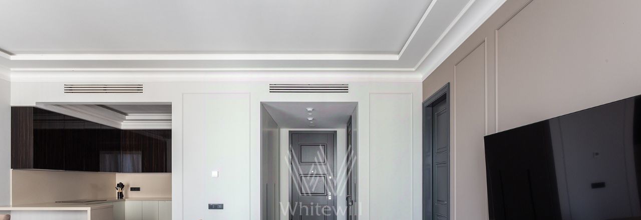 Апартаменты с 1-й спальней общей площадью 82 м² в комплексе премиум-класса Prime Park. Апартаменты расположены на 15-м этаже в башне Imperial. Выполнена дизайнерская отделка в стиле современной классики. Благодаря панорамным окнам и высоким потолкам пространство наполнено естественным светом.