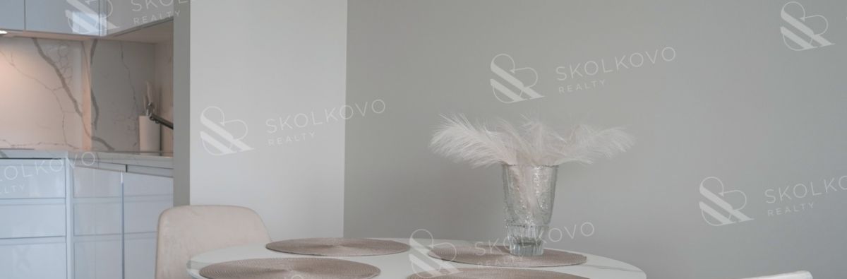 Квартира отличается продуманной планировкой, включающей просторную кухню-гостиную с панорамными окнами, которые наполняют пространство естественным светом, а также уютную спальню, дополненную большой гардеробной.