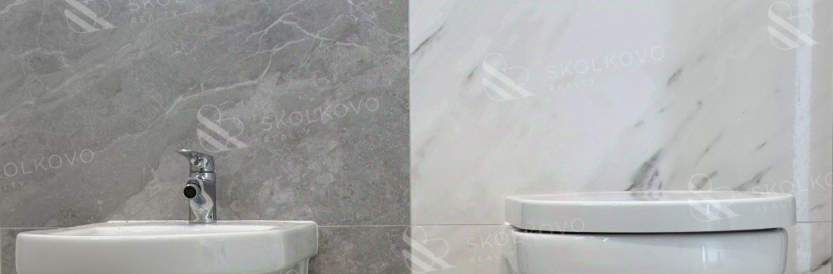 Современный санузел с высококачественной отделкой обеспечивает максимальный комфорт.