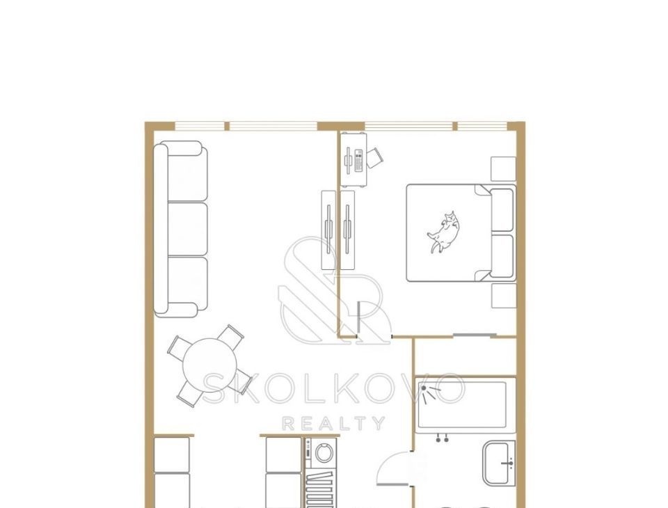 Квартира отличается продуманной планировкой, включающей просторную кухню-гостиную с панорамными окнами, которые наполняют пространство естественным светом, а также уютную спальню, дополненную большой гардеробной.