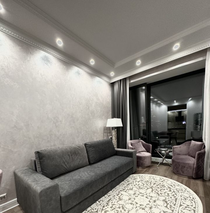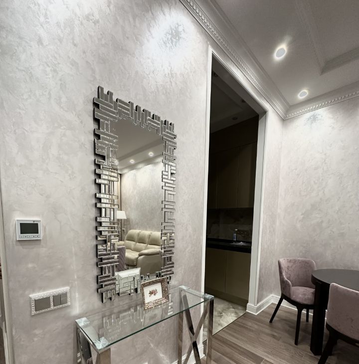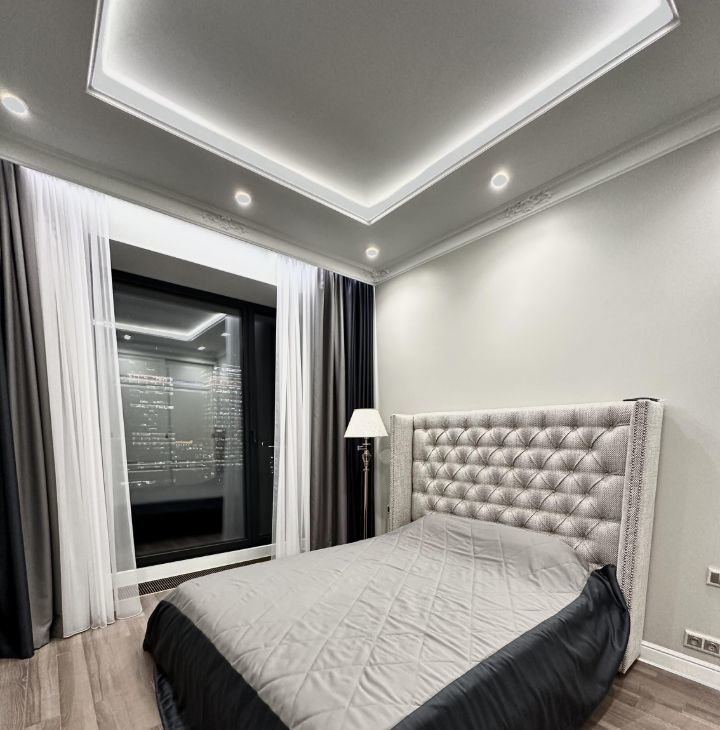В квартире сделан дизайнерский ремонт, что создает атмосферу уюта и современного стиля. В комнатах есть мебель, а также установлена вся необходимая техника: кондиционер, холодильник, посудомоечная машина, телевизор и стиральная машина. Санузел совмещенный, оборудован душевой кабиной. Окна выходят на улицу, поэтому в квартире всегда будет много света.