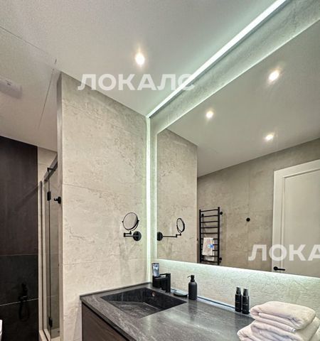 - Душевая кабина с подсветкой, санузел, стиральная машиной с функцией сушкой и большая зеркало с подсветкой;