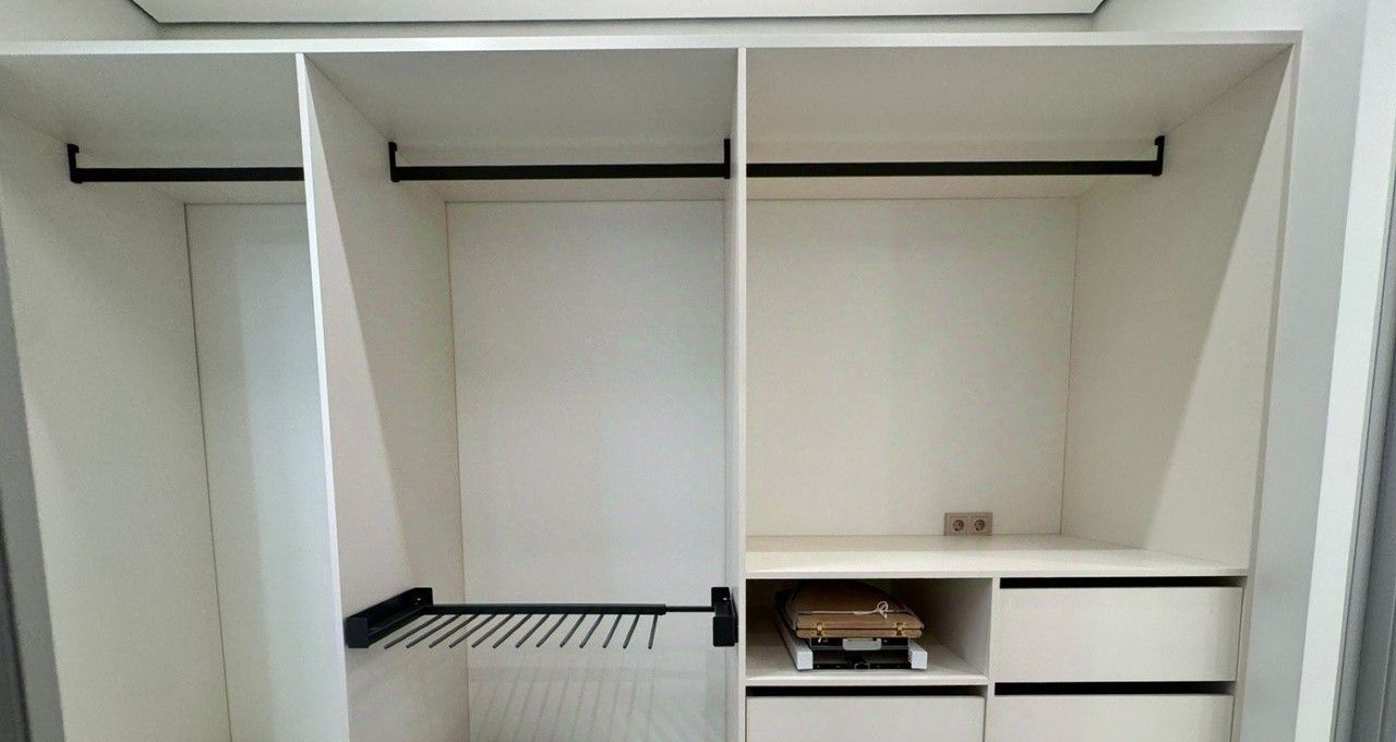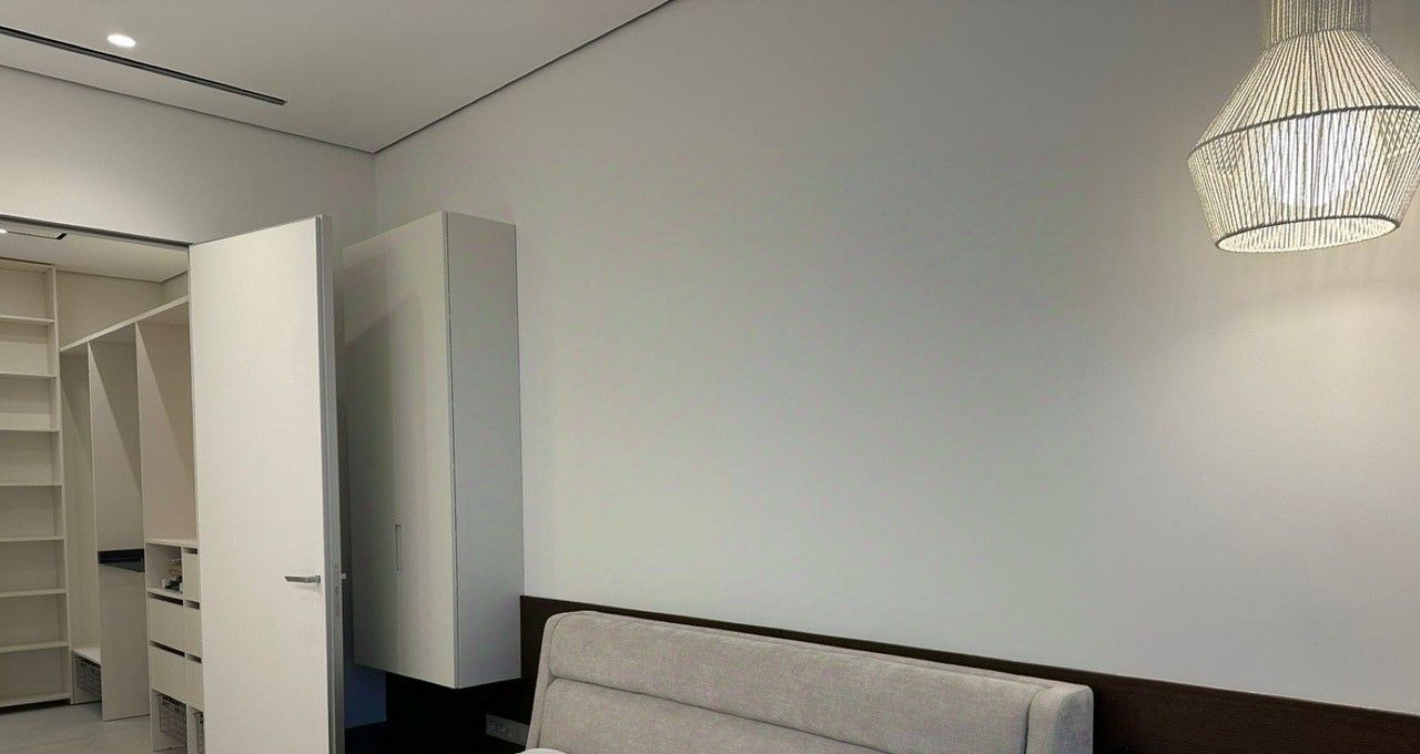 Изолированная мастер-спальня с гардеробной и ванной комнатой.