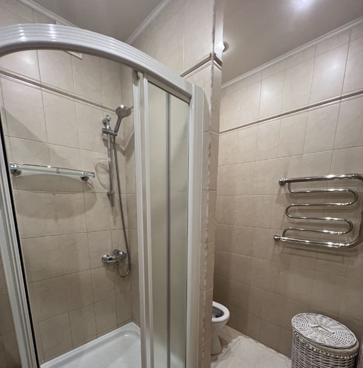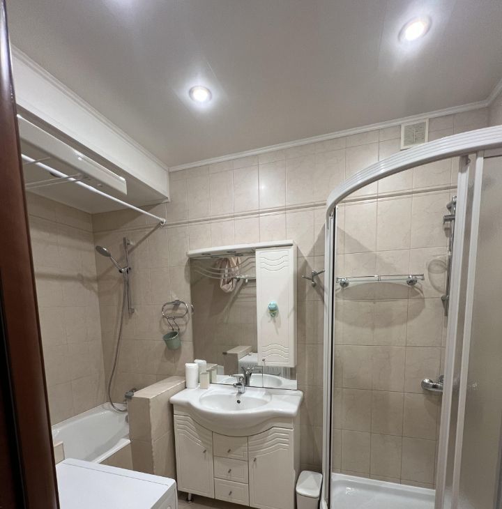 В квартире есть вся необходимая мебель и бытовая техника. в спальне: встроенный вместительный угловой шкаф, двуспальная кровать 180х200 с матрасом Bluesleep, комод, этажерка, кондиционер. В гостиной: раздвижной диван, кушетка с бортиками (подходит для детского сна), шкаф Idea, комод. В обеих жилых комнатах установлены бризеры Tion и система контроля качества воздуха. В кухне: холодильник Samsung, плита с духовым шкафом Ariston, посудомоечная машина Ariston, вытяжка, микроволновая печь, чайник, кондиционер. Санузел совмещен, оборудован как ванной, так и душевой кабиной, стиральной машиной Ariston.