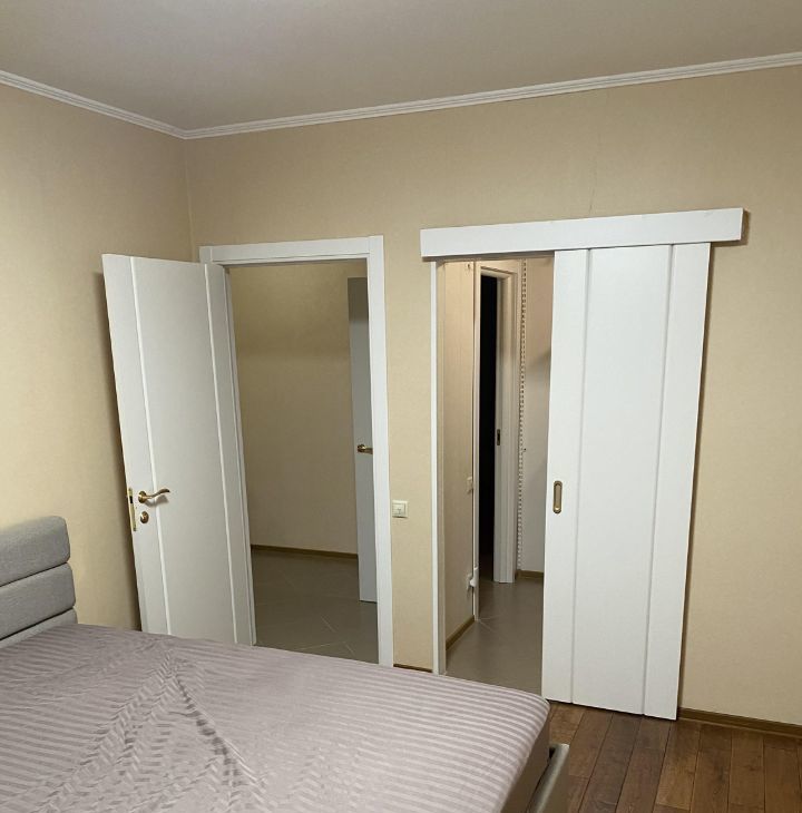 Сделана перепланировка в 2008-09 гг., выделены 2 санузла, сделана просторная гардеробная с входами как из спальни, так и коридора.