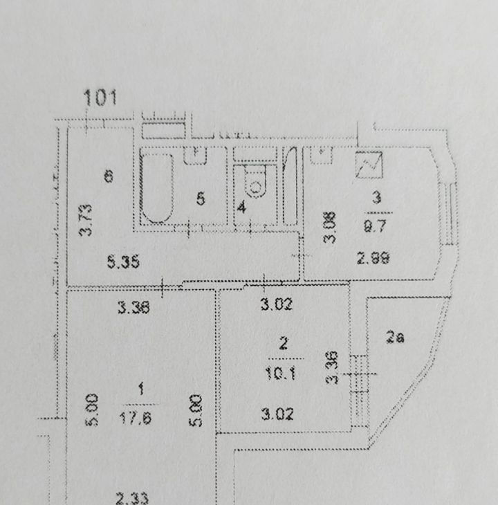 Квартира состоит из двух изолированных комнат 17,6 кв.м. и 10,1 кв.м., кухня 9,7 кв.м., прихожая 5,35 кв.м., балкон, санузел раздельный.