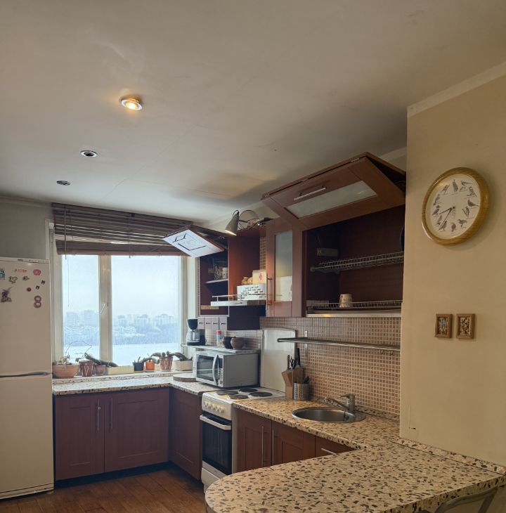 Сдается на длительный срок первый раз. Одна выделенная спальня с дверью и большая комната со спальным местов, отдельно кухня. вид из окна на водохранилище, летом зеленый рай с голубой водой. Огороженная территория, въезд через шлагбаум. В доме консьерж. Также в доме имеется сауна. В 5 минутах парк Покровское Стрешнево. Зелёный район со всей необходимой инфраструктурой.
