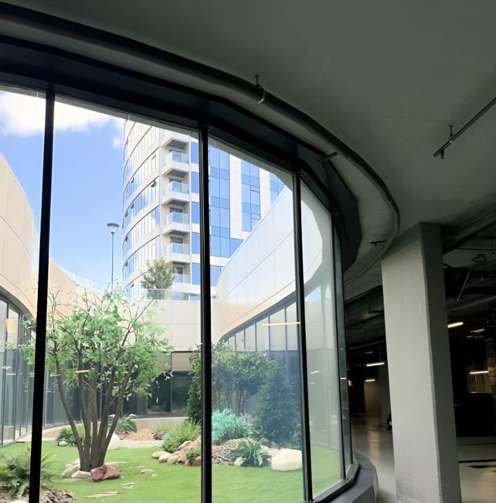 Жилой комплекс имеет собственное благоустроенное пространство с закрытой территорией двора, плавно переходящей в прогулочную зону вдоль реки.