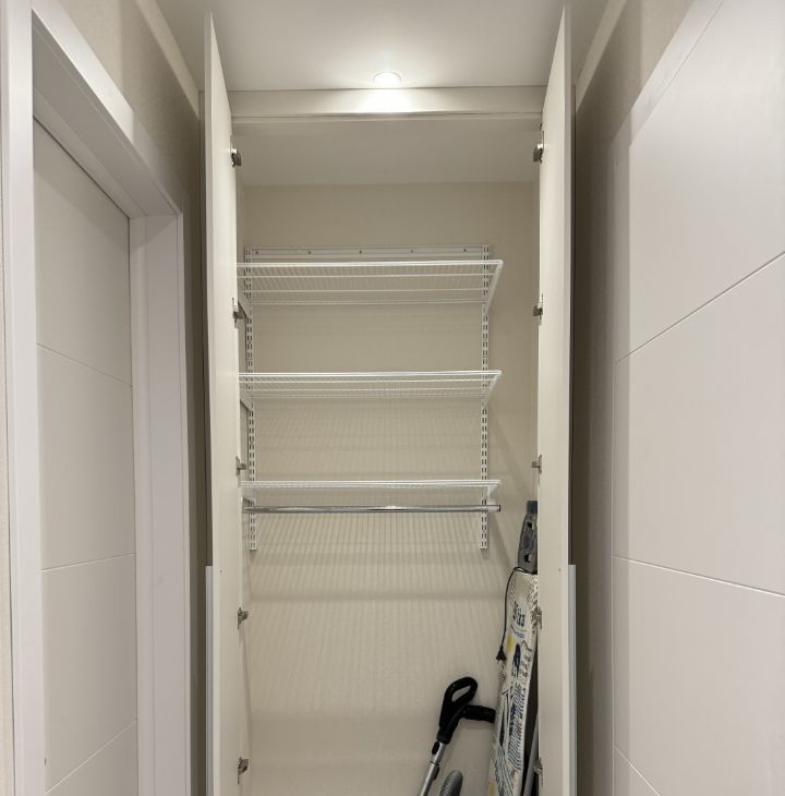 Изолированная спальня с гардеробной, просторная кухня-гостиная, ванная комната, холл и дополнительная зона для хранения.