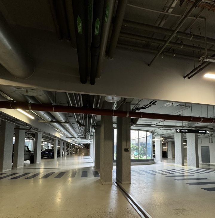 Двухуровневый подземный паркинг с японскими садами.
