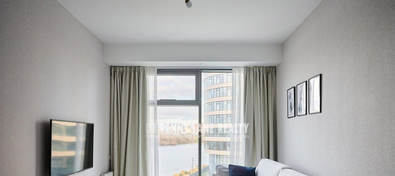 Арт. 90857752. Без комиссии для арендатора! Видовая квартира в новом ЖК бизнес-класса Акватория (2022г.). Новый ремонт. Панорамные окна выходят на канал имени Москвы. Высокие потолки. Дизайнерский ремонт. Мебель и бытовая техника ведущих мировых производителей. Система "умный дом". Теплые полы. Планировка: кухня-гостиная, спальня, санузел с душевой кабиной, гардеробная.