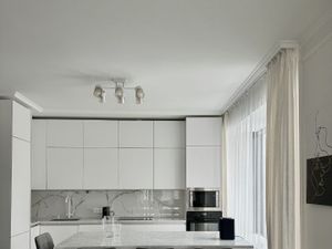 Интерьер: просторная и функциональная планировка с дизайнерским ремонтом создает уютную атмосферу и позволяет наслаждаться комфортом. Высота потолков - 3 метра. Интерьер выполнен в стиле "Светлая классика". Квартира полностью меблирована и оснащена всей необходимой техникой. Предоставлено постельное бельё.