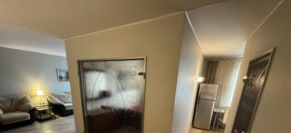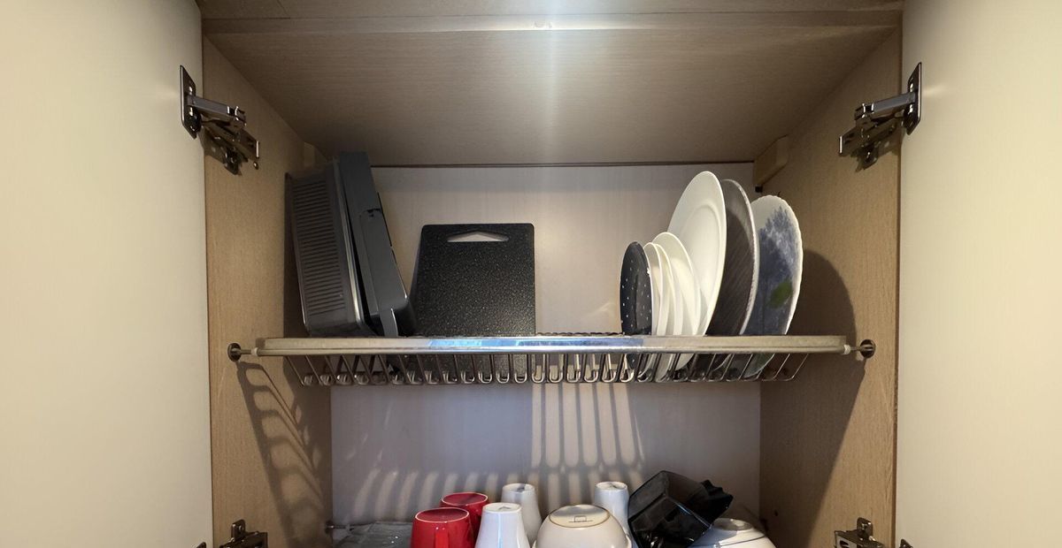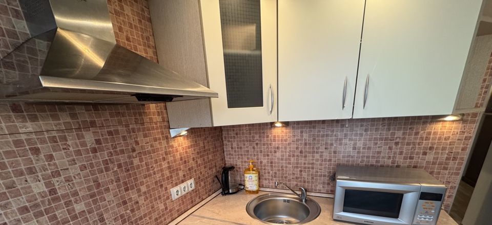 - Кухня: холодильник, микроволновка, стиральная машина, плита + вытяжка, чайник, также есть вся посуда