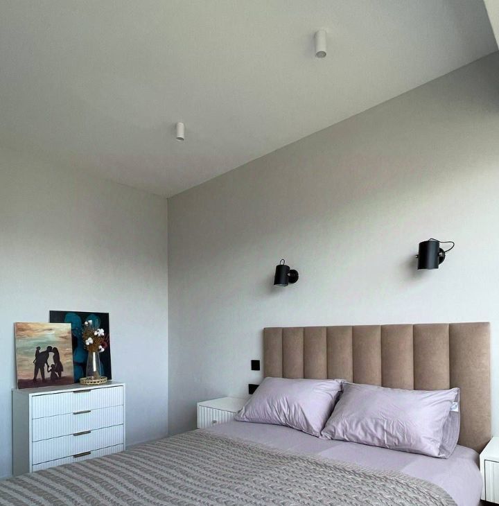 - кровать с тумбами и прикроватным освещением