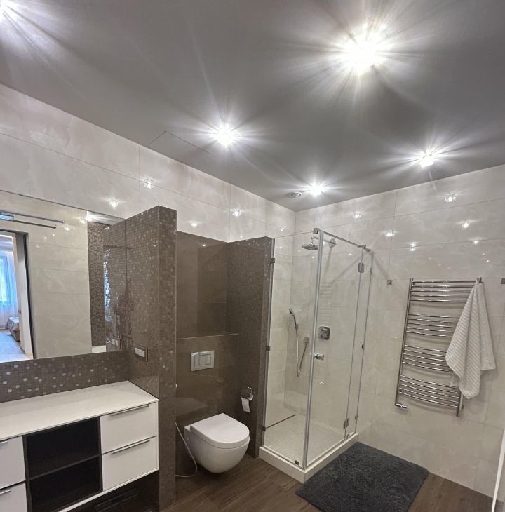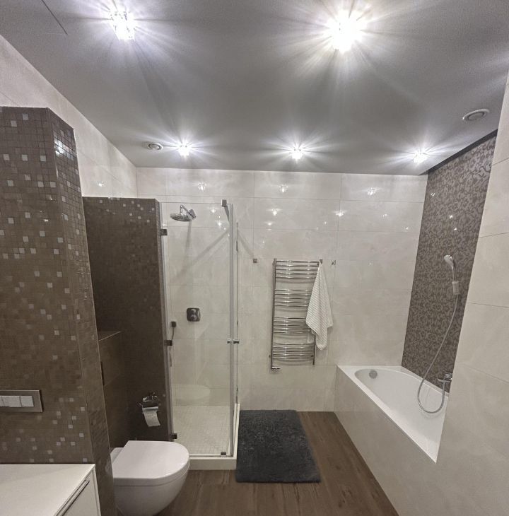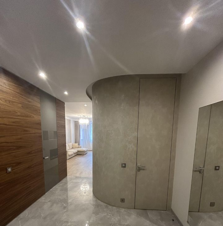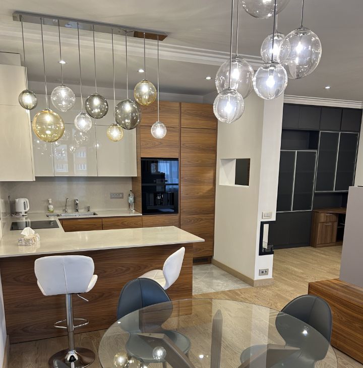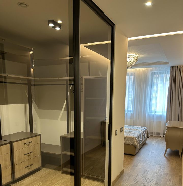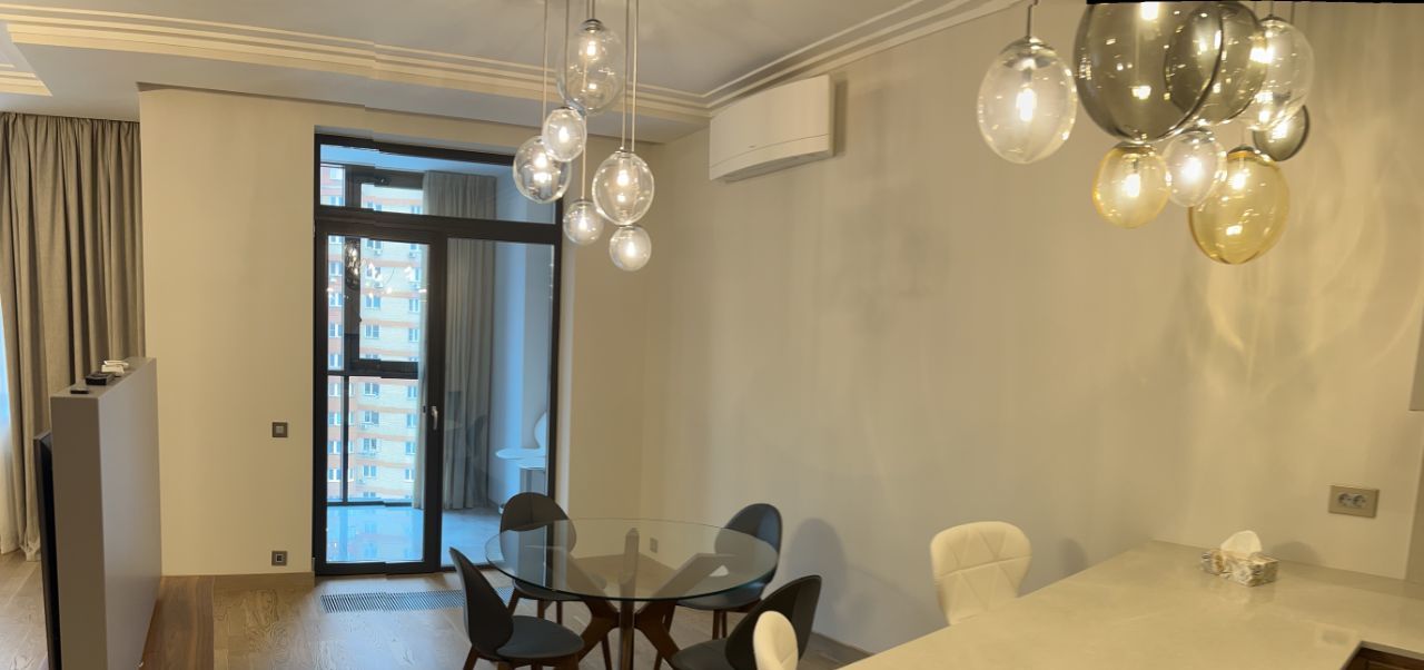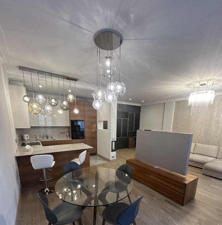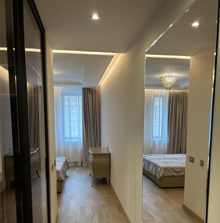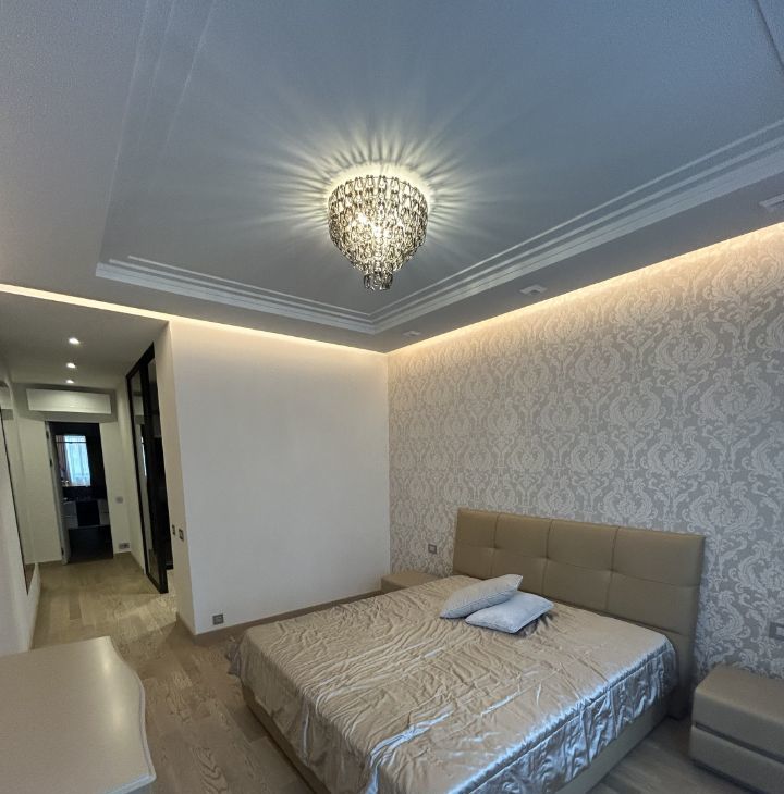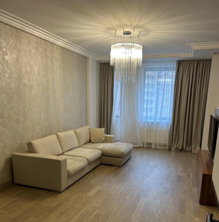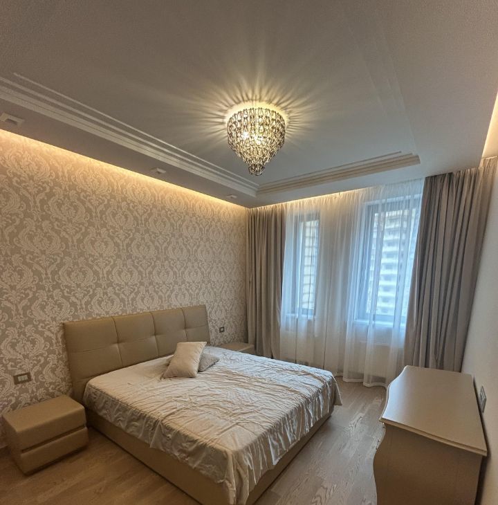 Сдается в аренду просторная квартира, в доме бизнес класса ,с дизайнерским ремонтом, расположенная на 11-м этаже Общая площадь квартиры составляет 107,4 кв. м, жилая площадь — 50 кв. м. Квартира включает в себя одну отдельную спальню и большую кухню-зал ,потолки высотой 3 метра добавляют еще больше простора. В квартире два санузла и большая гардеробная комната. Дизайнерский ремонт, выполнен из дорогих, натуральных материалов, дорогая мебель и техника.