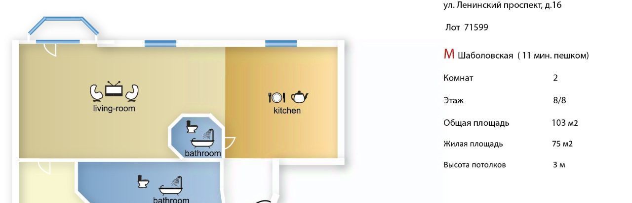 2-к кв. Москва Ленинский просп., 16 (103.0 м²)