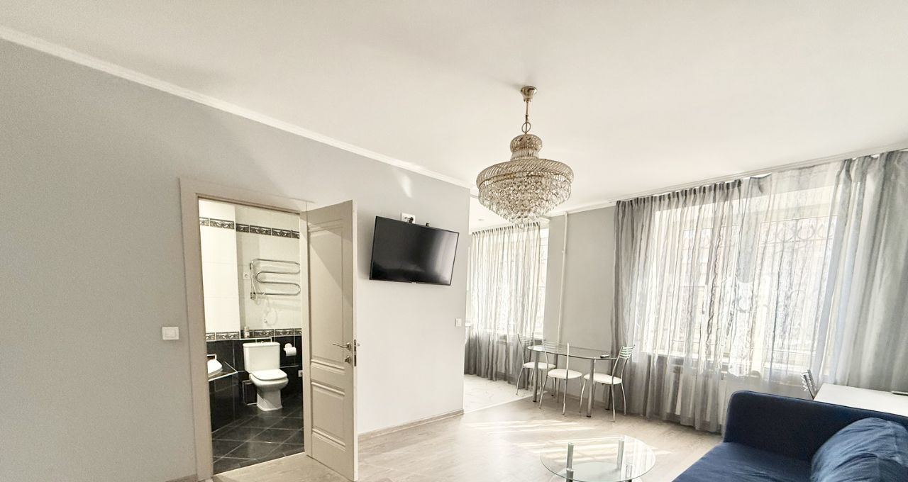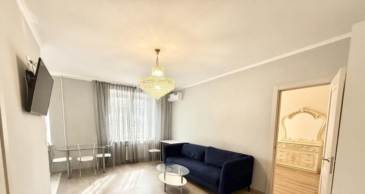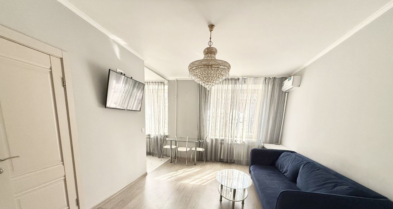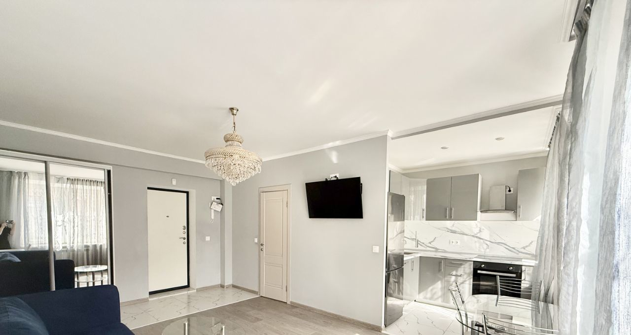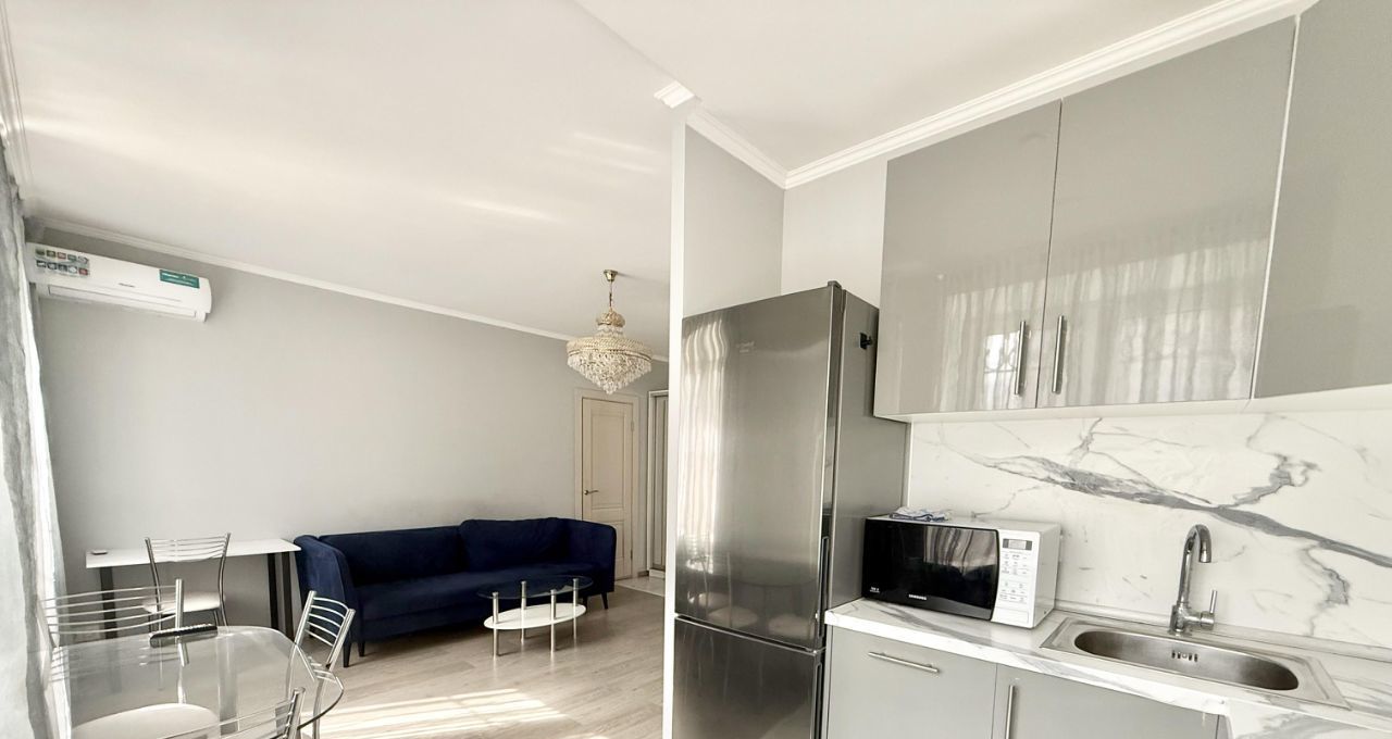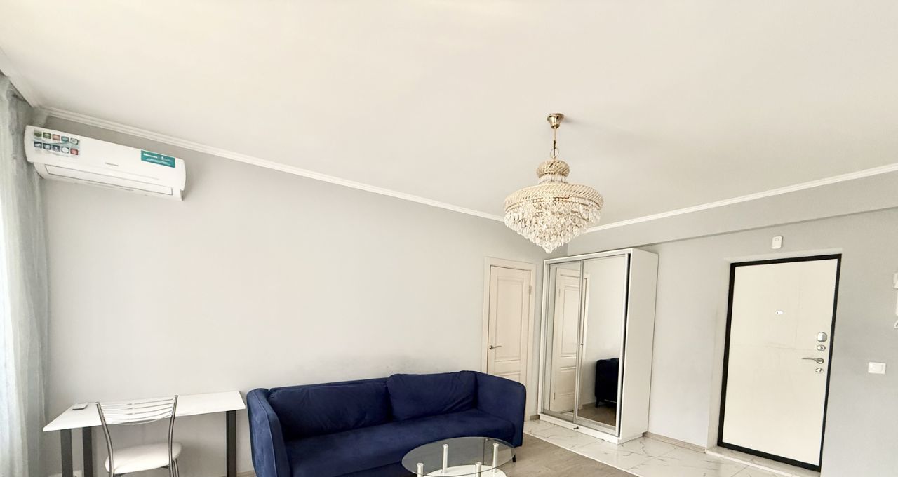 Гостиная совмещена с кухней, изолированная спальня. Санузел совмещённый, ванна. кондиционирование.
