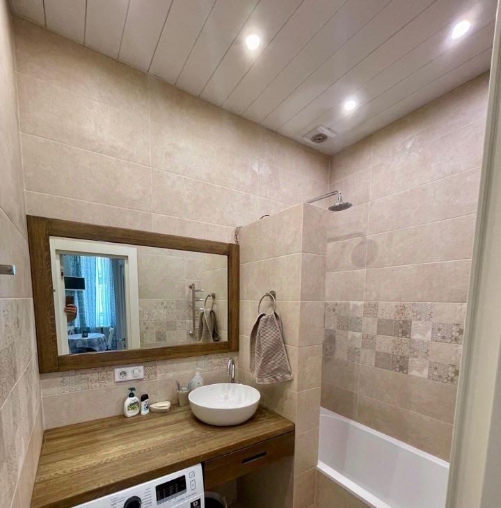 В квартире: Интернет, охрана, бойлер на случай отключения горячей воды, стиральная машина, три кондиционера, два телевизора, холодильник, микроволновка, посудомоечная машина. Санузел раздельный, немецкая сантехника Villeroy&Boch. Пол - натуральное дерево (инженерная доска), керамогранит. Ремонт делали для себя.