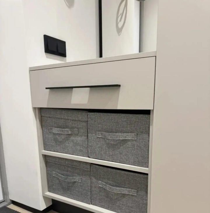 Отдельная спальня, просторная кухня/гостиная, санузел с ванной, много систем хранения.