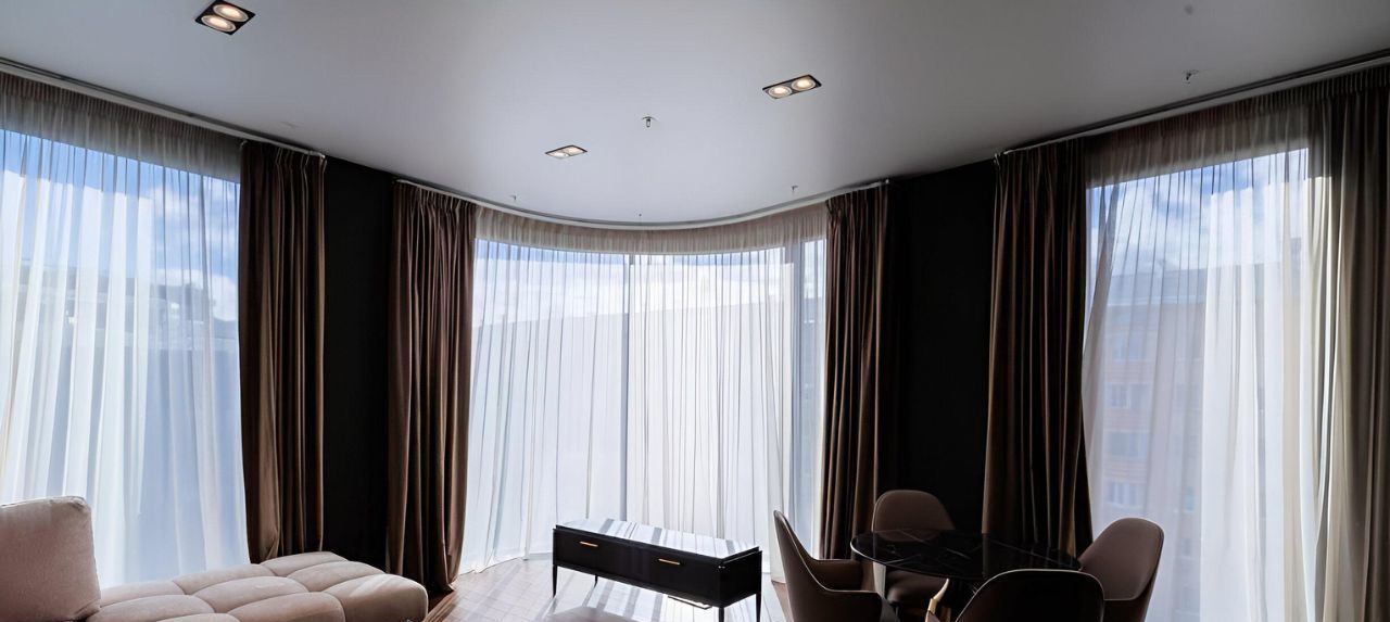 Просторная квартира с панорамным остеклением в новом доме премиум класса.