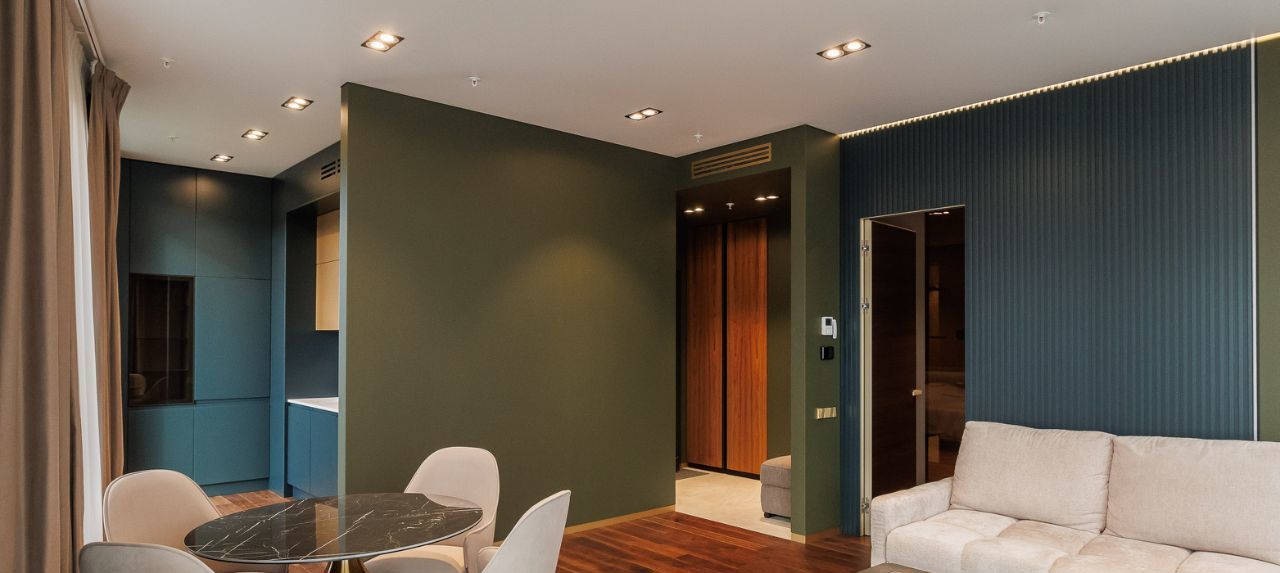 Свежий дизайнерский ремонт, из дорогих материалов, качественная мебель и техника. Большая гостиная-кухня, уютная спальня с гардеробной комнатой и отдельным санузлом, гостевой санузел.