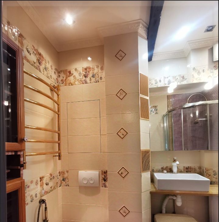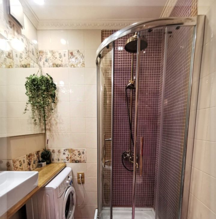 Санузел совмещенный с душевой кабиной с "тропическим душем", стиральная машинка в санузле.